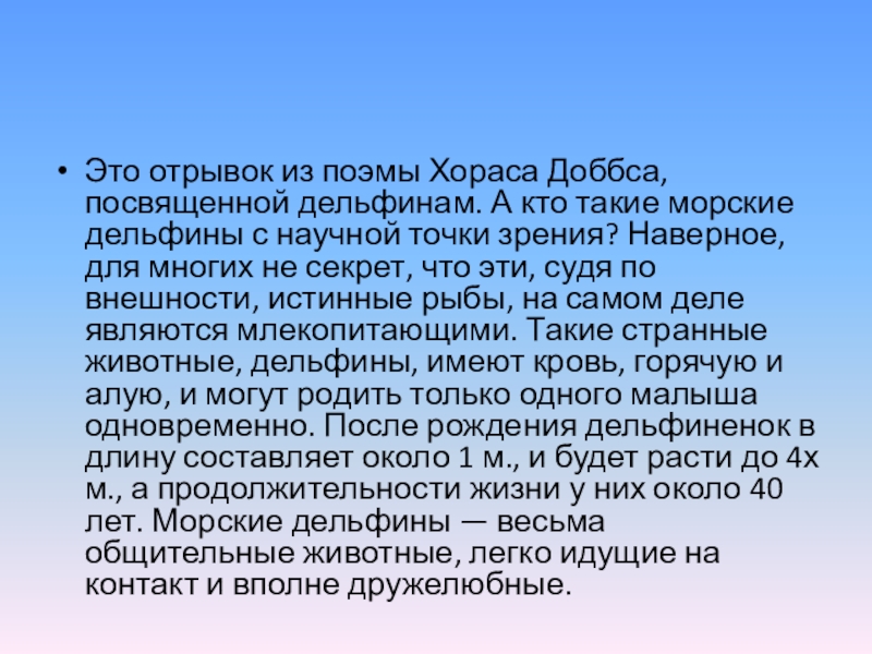 Слайд 4Это отрывок из поэмы Хораса Доббса, посвященной дельфинам. А кто такие
