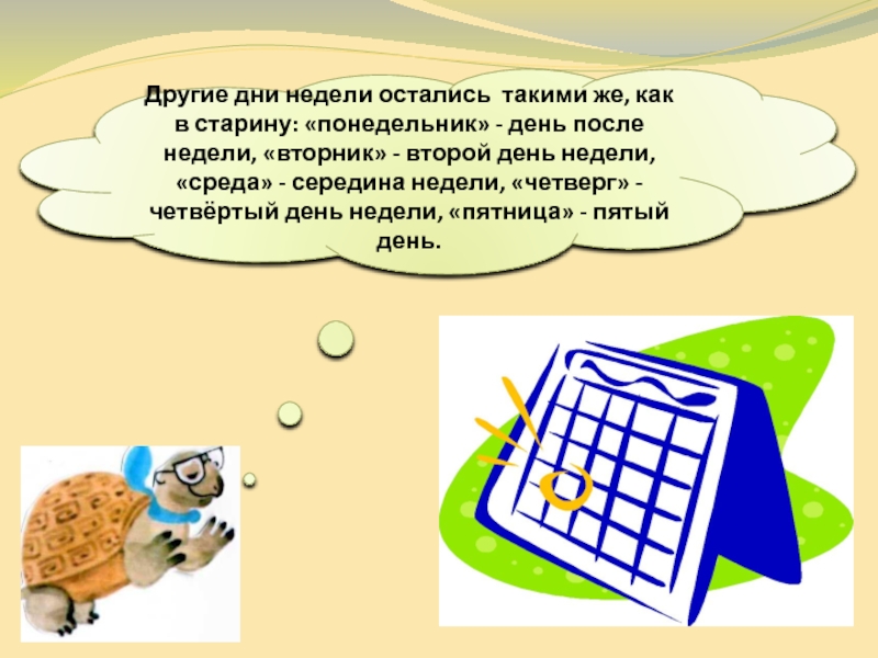 Другие дни недели остались такими же, как в старину: «понедельник» - день после недели, «вторник» - второй