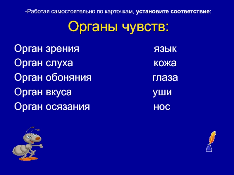 -Работая самостоятельно по карточкам, установите соответствие:
