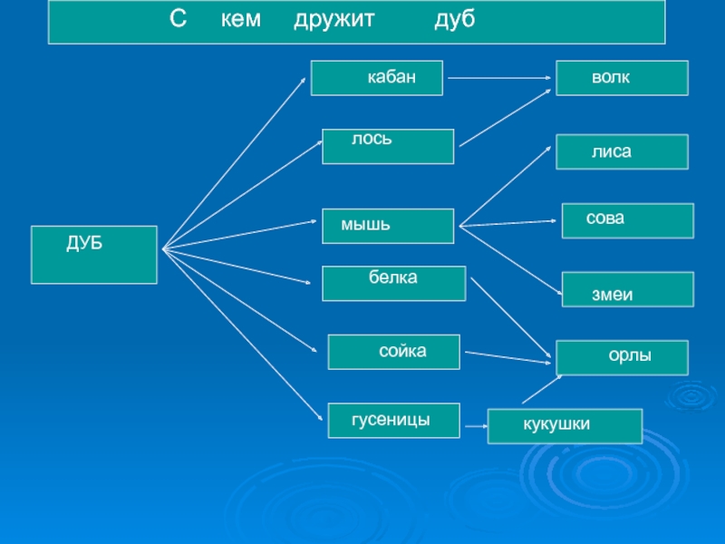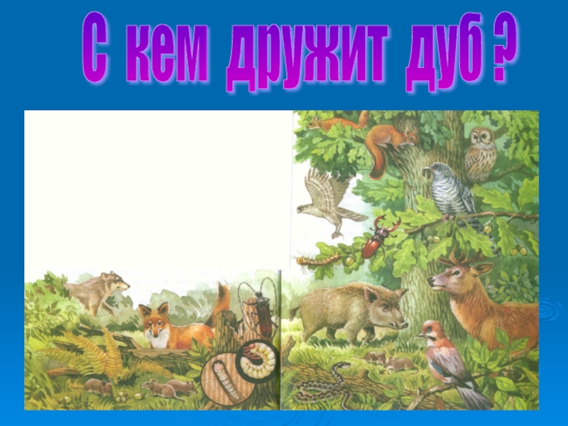 лосьмышьволклисасовазмеиорлыкукушкикабанбелкасойкагусеницыДУБС   кем   дружит     дуб