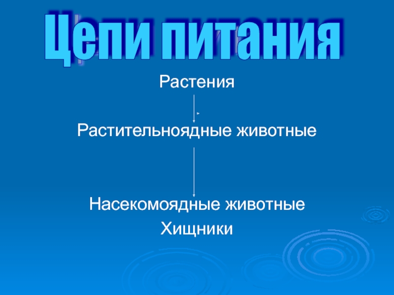 РастенияРастительноядные животныеНасекомоядные животныеХищники Цепи питанияЦепи питания