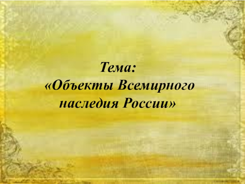Тема:«Объекты Всемирного наследия России»