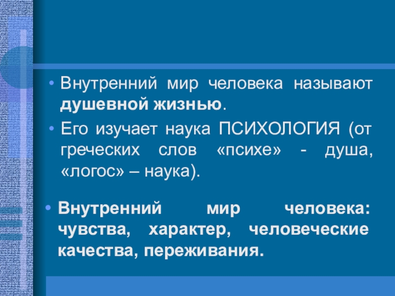 Внутренний мир человека: чувства, характер, человеческие качества, переживания.