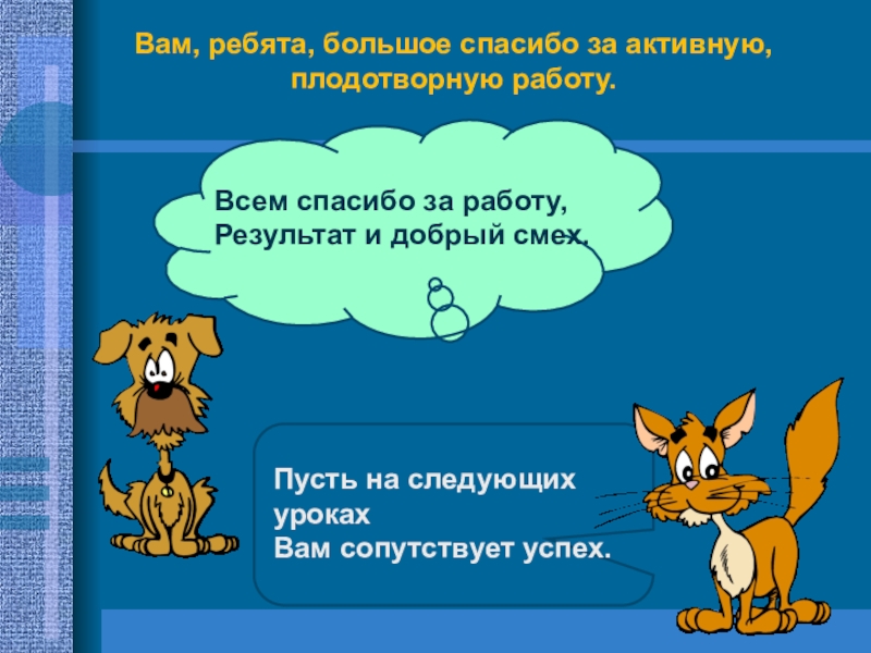 Вам, ребята, большое спасибо за активную, плодотворную работу.