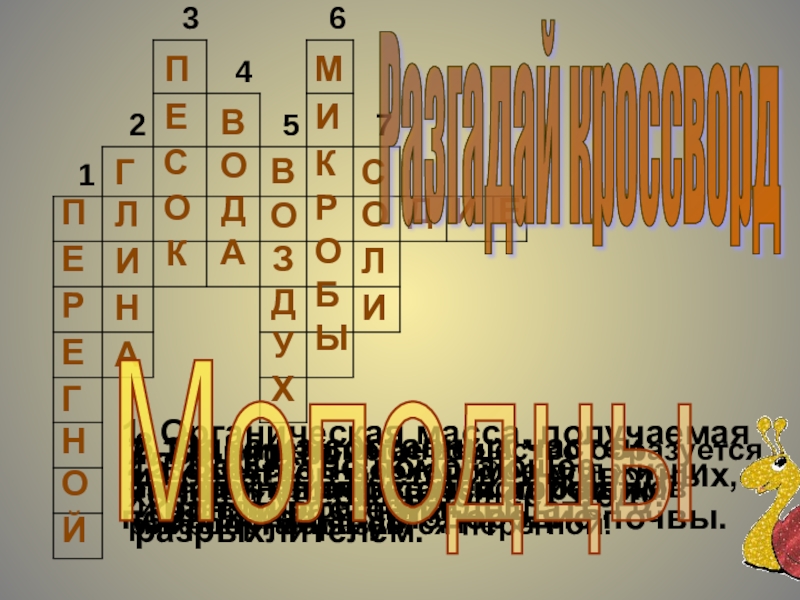 3. Одна из составных частей почвы, являющаяся хорошим разрыхлителем.