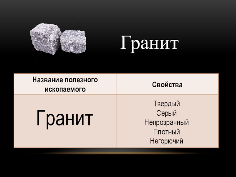 ГранитГранитТвердыйСерыйНепрозрачныйПлотныйНегорючий