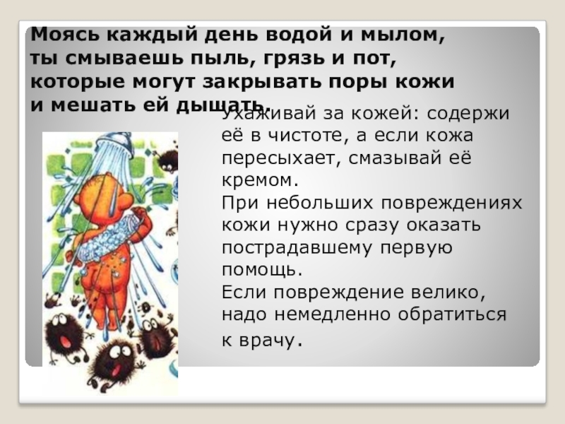Ухаживай за кожей: содержи её в чистоте, а если кожа пересыхает, смазывай её кремом.