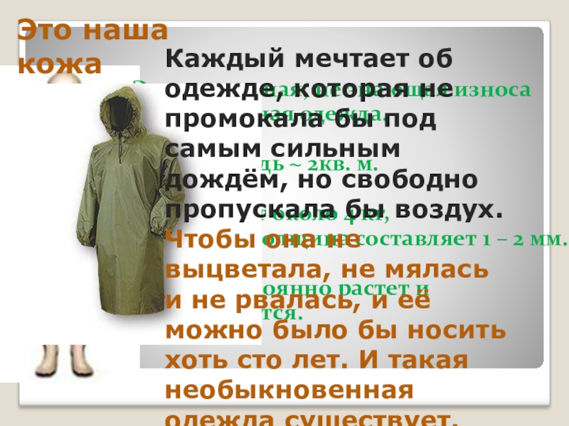 Каждый мечтает об одежде, которая не промокала бы под самым сильным дождём, но свободно пропускала бы воздух. Чтобы она не выцветала, не мялась и не рвалась, и её можно было бы носить хоть сто лет. И такая необыкновенная одежда существует.