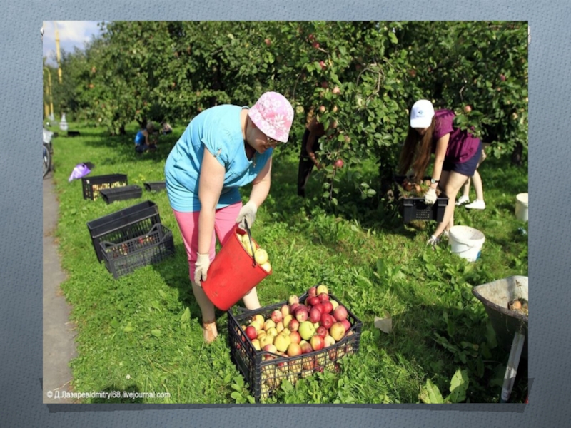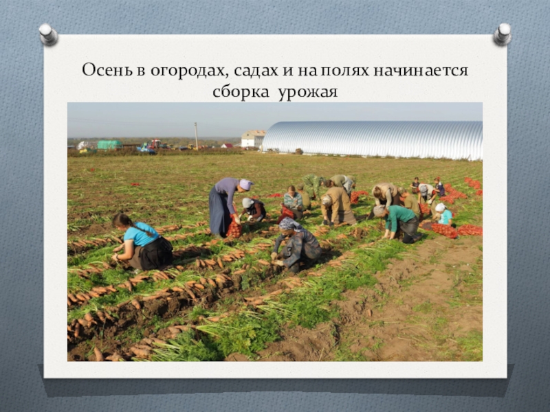 Слайд 9Осень в огородах, садах и на полях начинается сборка урожая