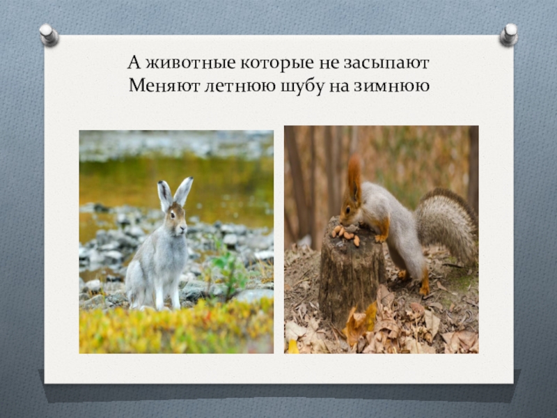 Слайд 15А животные которые не засыпают Меняют летнюю шубу на зимнюю