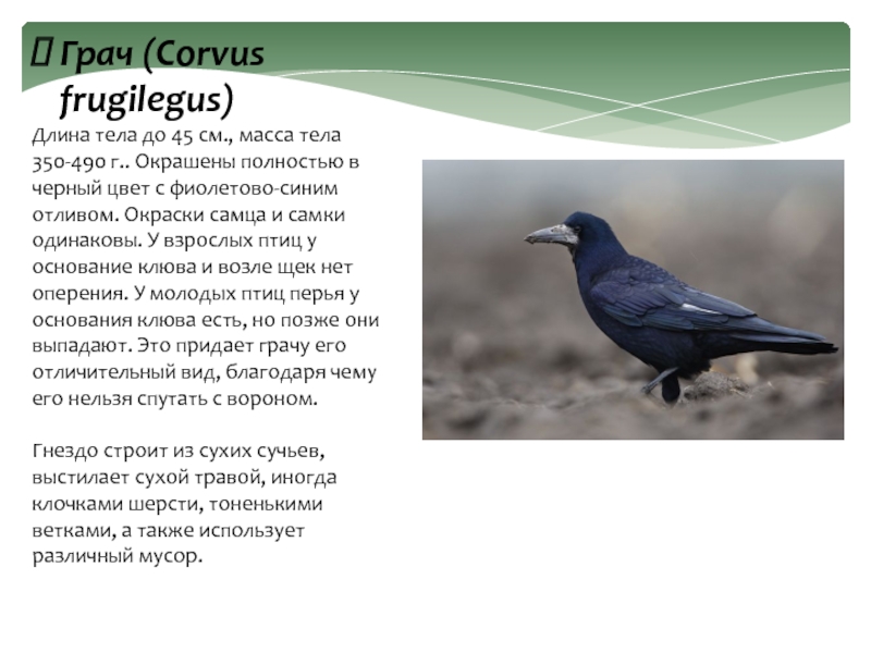 Слайд 9Грач (Corvus frugilegus)