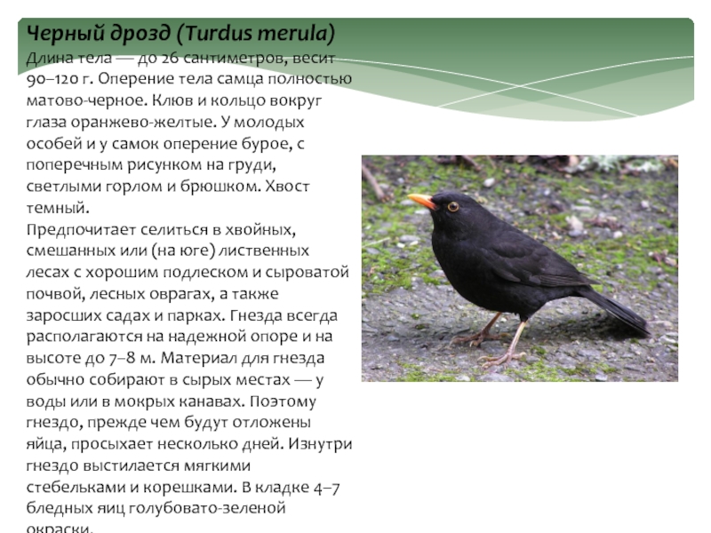 Слайд 14Черный дрозд (Turdus merula)