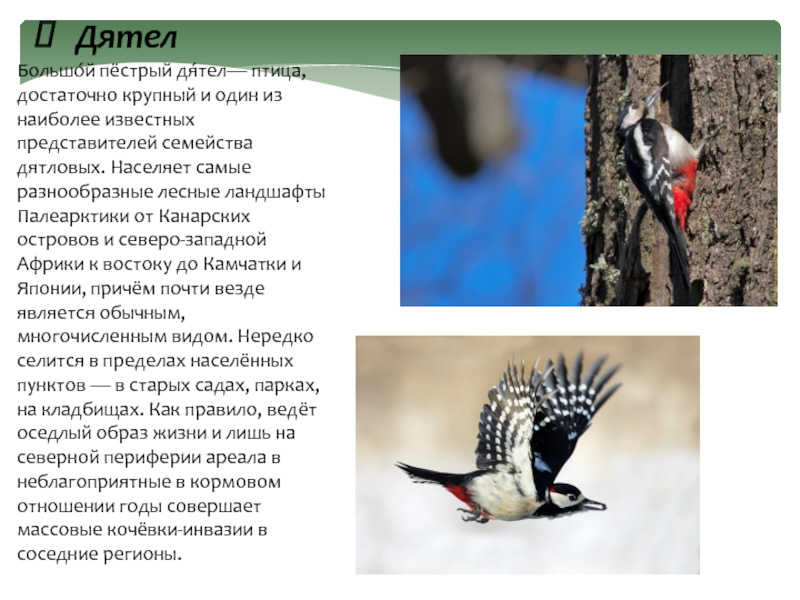 Большо́й пёстрый дя́тел— птица, достаточно крупный и один из наиболее известных