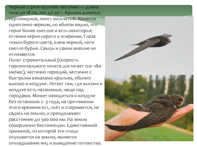 Слайд 15Черный стриж крупнее ласточки — длина тела до 18 см, вес