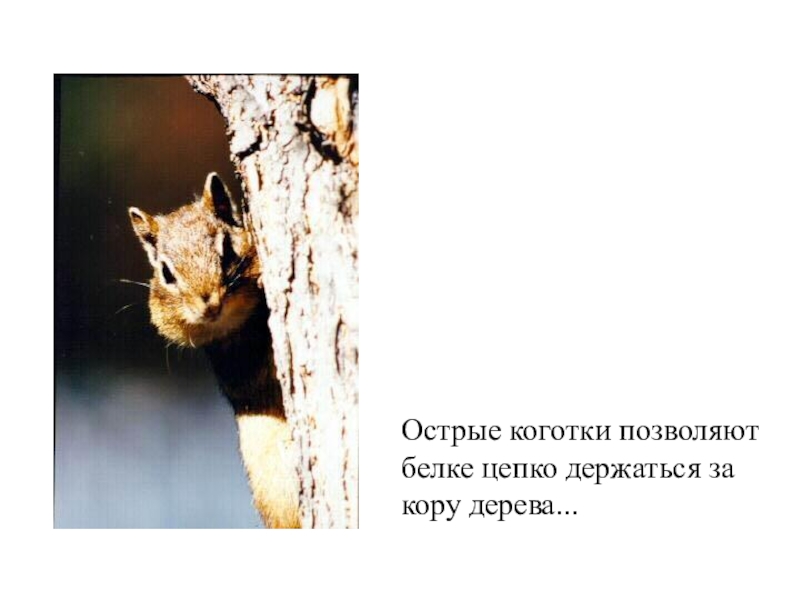Острые коготки позволяютбелке цепко держаться за кору дерева...