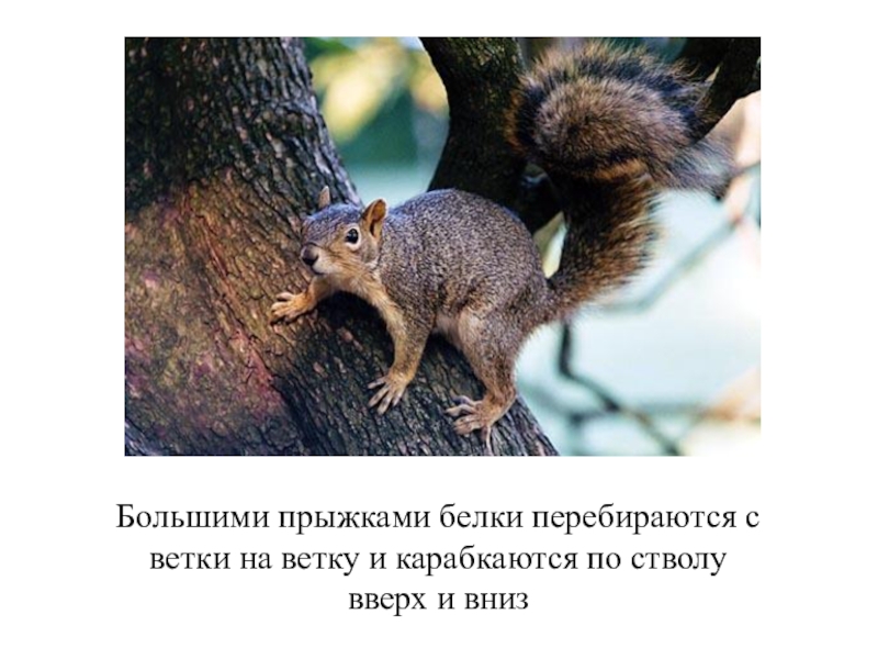 Большими прыжками белки перебираются с ветки на ветку и карабкаются по стволувверх и вниз