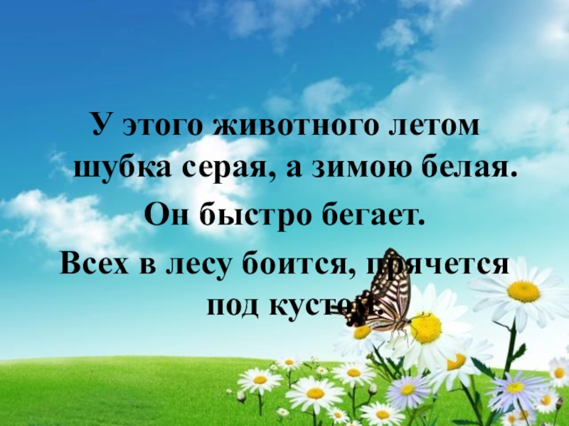 Слайд 2У этого животного летом шубка серая, а зимою белая.