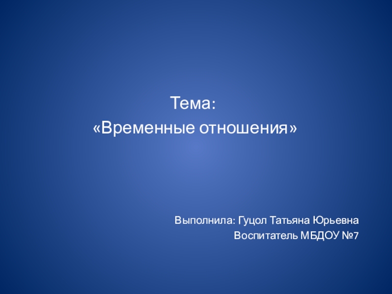 Тема: «Временные отношения»Выполнила: Гуцол Татьяна ЮрьевнаВоспитатель МБДОУ №7
