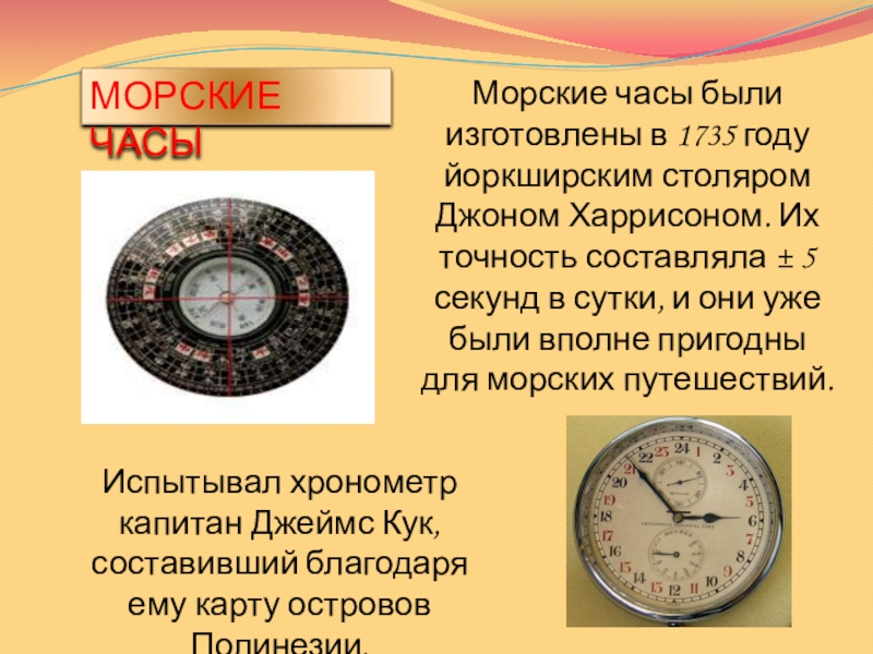 Испытывал хронометр капитан Джеймс Кук, составивший благодаря ему карту островов Полинезии.