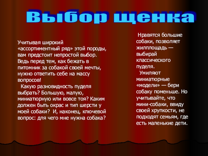 Нравятся большие собаки, позволяет жилплощадь — выбирай классического пуделя.