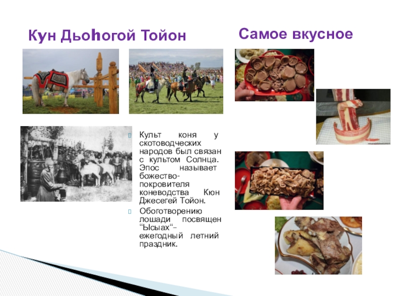 Лошадь играло огромную роль в жизни народов Саха. Хозяйство, быт, культура, мифология, религия – все имело связь с лошадью.