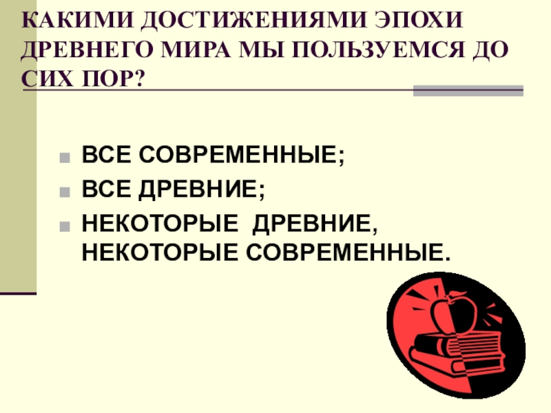 Какие из этих предметов могли появиться в эпоху Древнего мира?