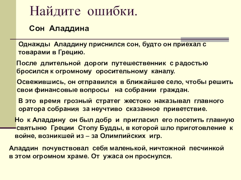 Однажды Аладдину приснился сон, будто он приехал с товарами в Грецию.