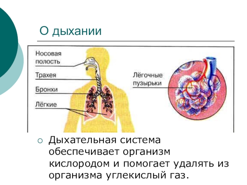 О дыханииДыхательная система обеспечивает организм кислородом и помогает удалять из организма углекислый газ.