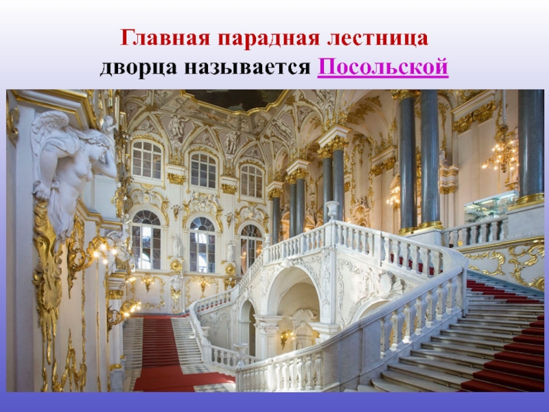 Слайд 22Главная парадная лестница дворца называется Посольской