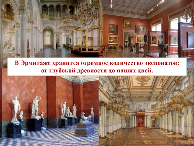 Слайд 24В Эрмитаже хранится огромное количество экспонатов: