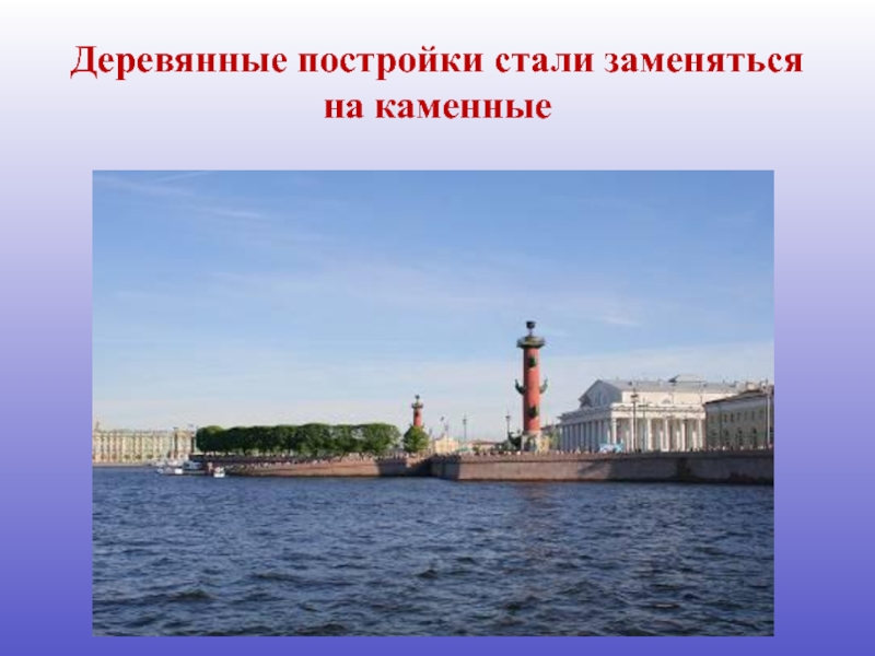 Слайд 18Деревянные постройки стали заменяться на каменные