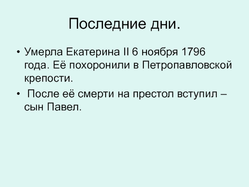 Умерла Екатерина II 6 ноября 1796 года. Её похоронили в