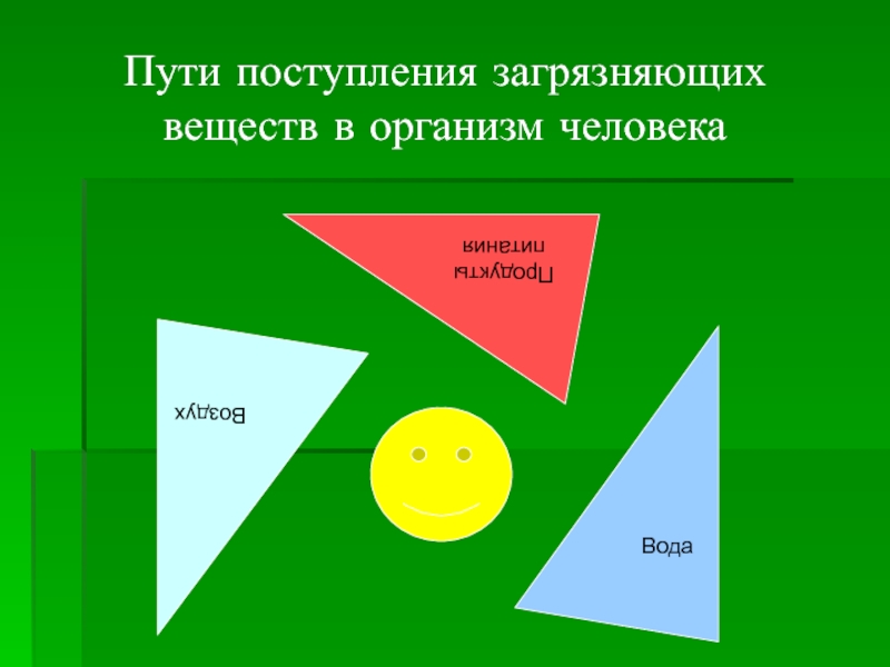 Пути поступления загрязняющих веществ в организм человекаВоздухПродукты питанияВода