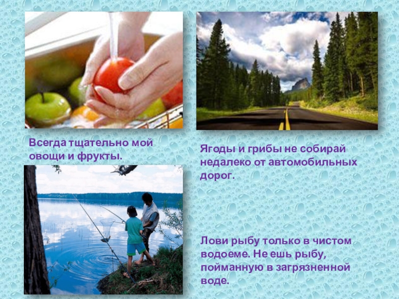 Лови рыбу только в чистом водоеме. Не ешь рыбу, пойманную в загрязненной воде.
