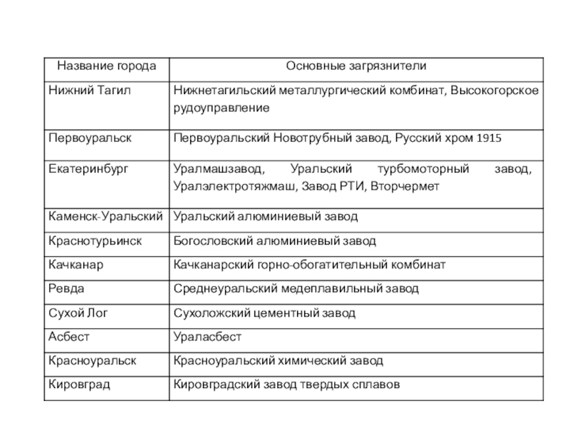 Среднеуральский, Кировградский и Красноуральский медеплавильные комбинаты,