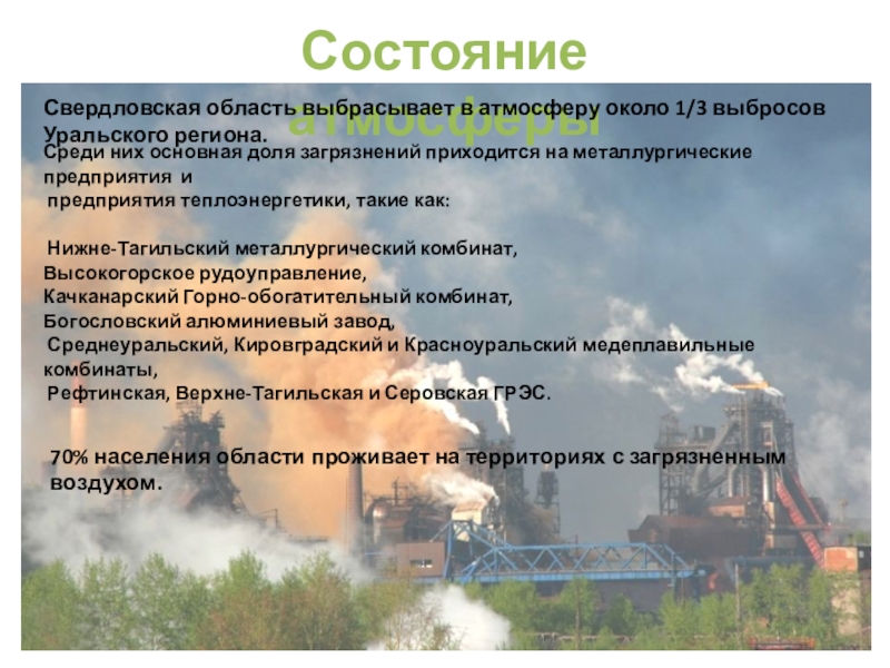 70% населения области проживает на территориях с загрязненным воздухом.