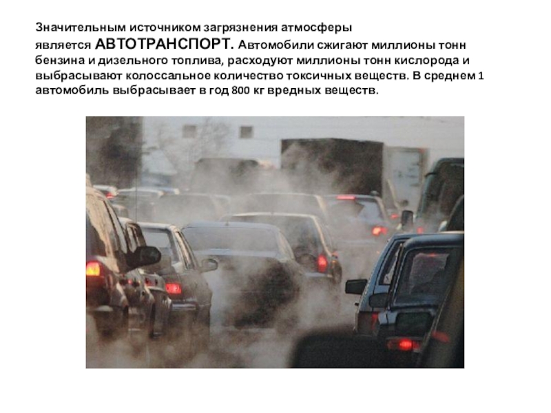 Большую долю загрязнений вносит автотранспорт.