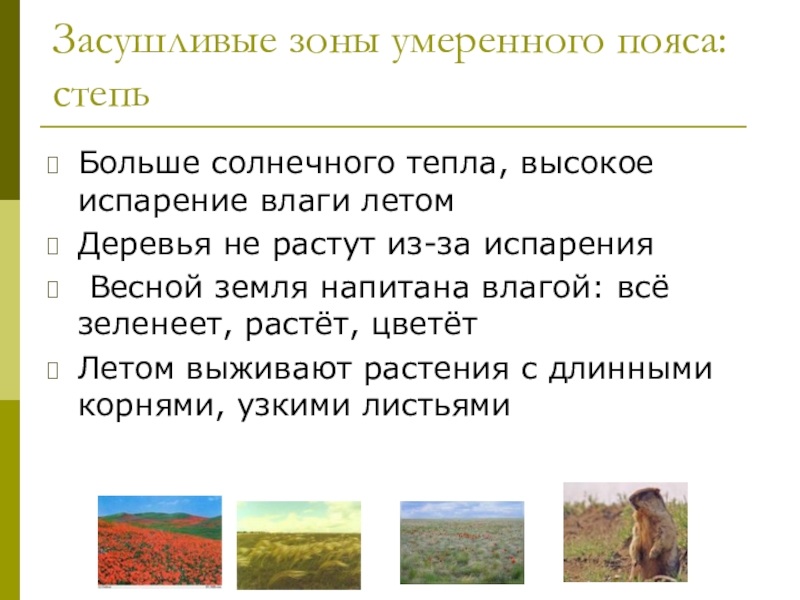 Слайд 10Засушливые зоны умеренного пояса: степь
