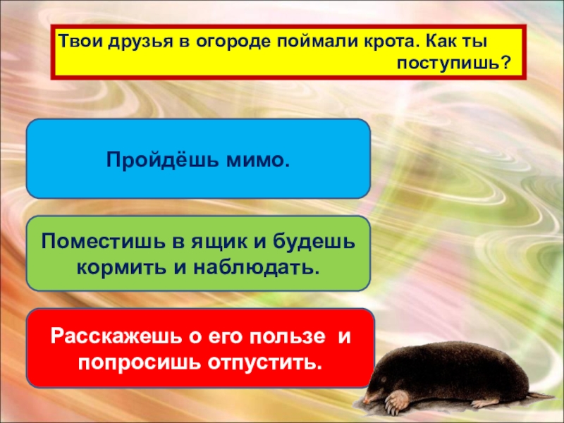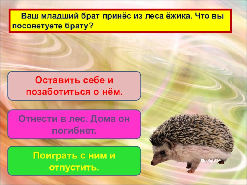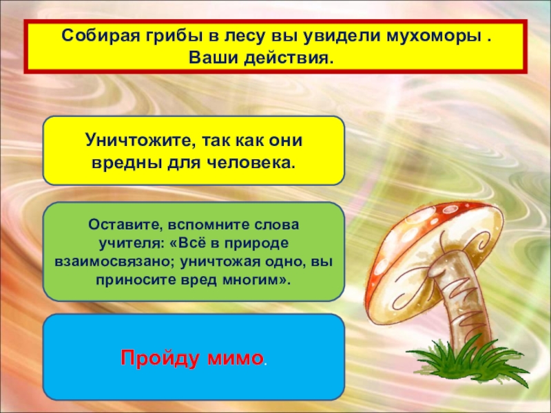 Оставите, вспомните слова учителя: «Всё в природе взаимосвязано; уничтожая одно, вы приносите вред многим».