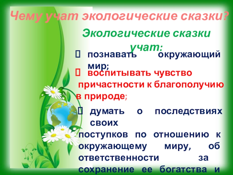 поступков по отношению к окружающему миру, об ответственности за сохранение ее богатства и красоты.