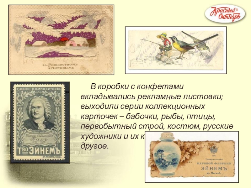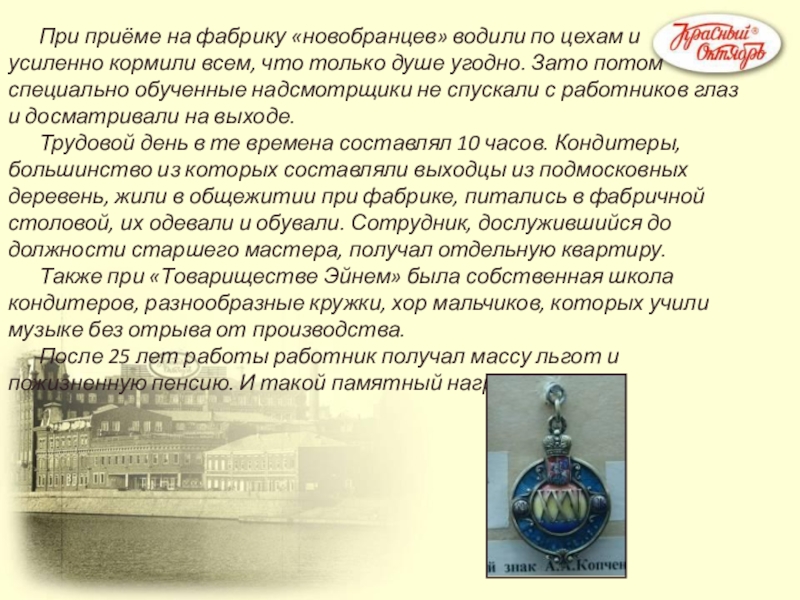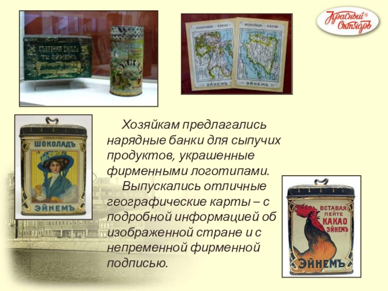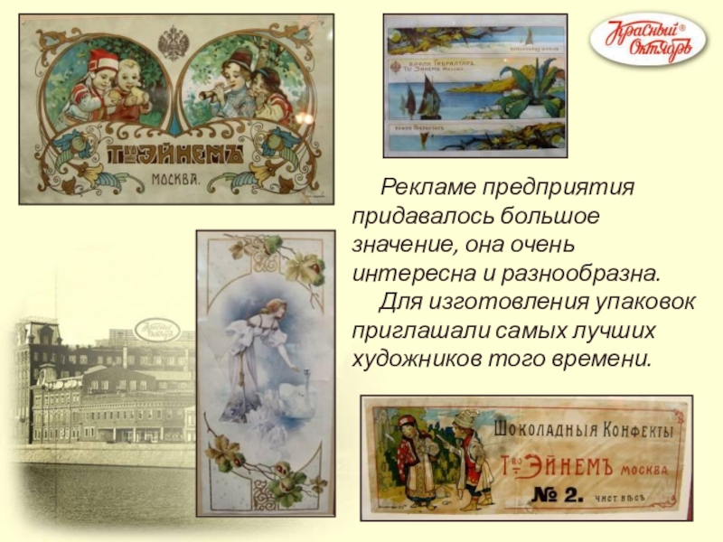 Тогда на фабрике работало уже более 100 человек. Производились карамель, конфеты, шоколад, какао напитки, пастила, печенье, пряники, бисквиты, глазированные шоколадом фрукты (слива, вишня, груша), а также компоты, сиропы, варения, джемы, мармелад.