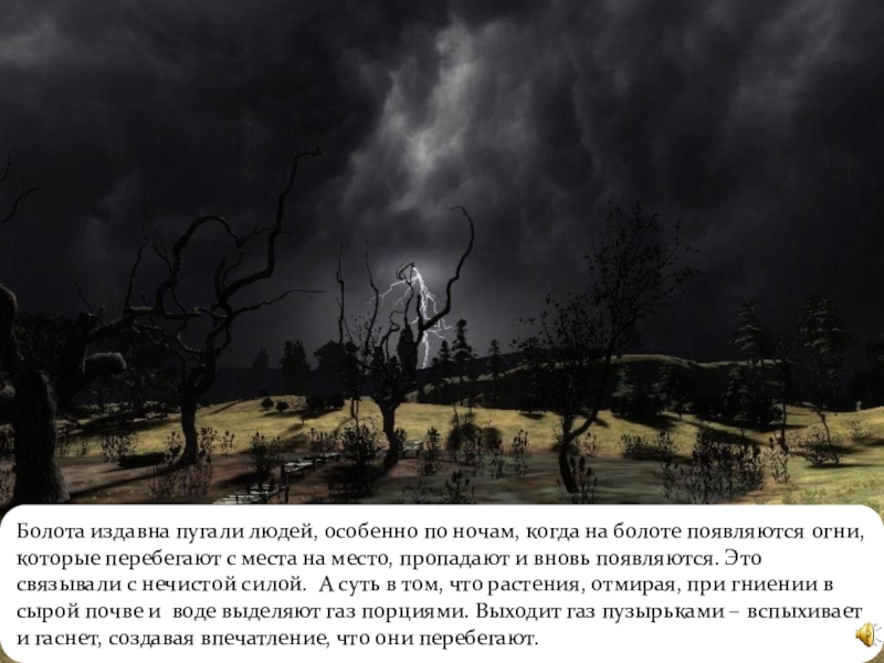 Слайд 3Болота издавна пугали людей, особенно по ночам, когда на болоте появляются