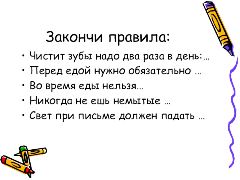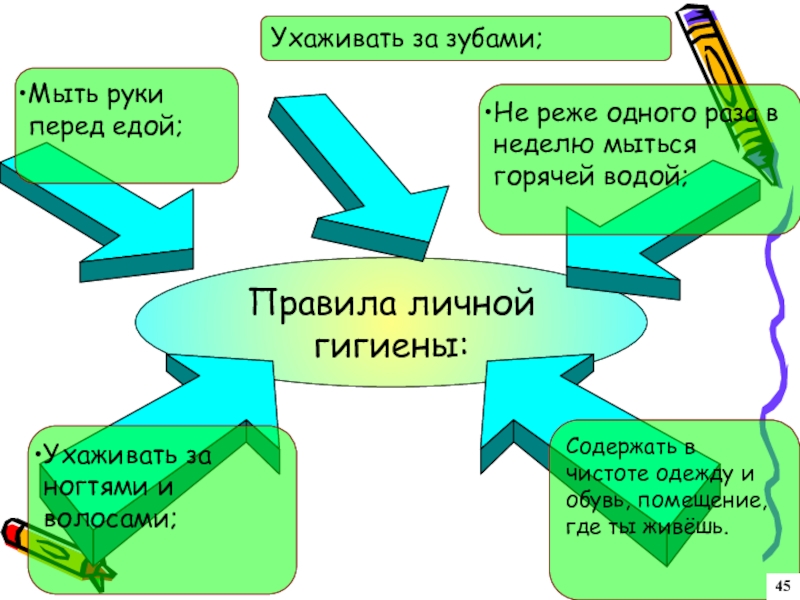 Содержать в чистоте одежду и обувь, помещение, где ты живёшь.