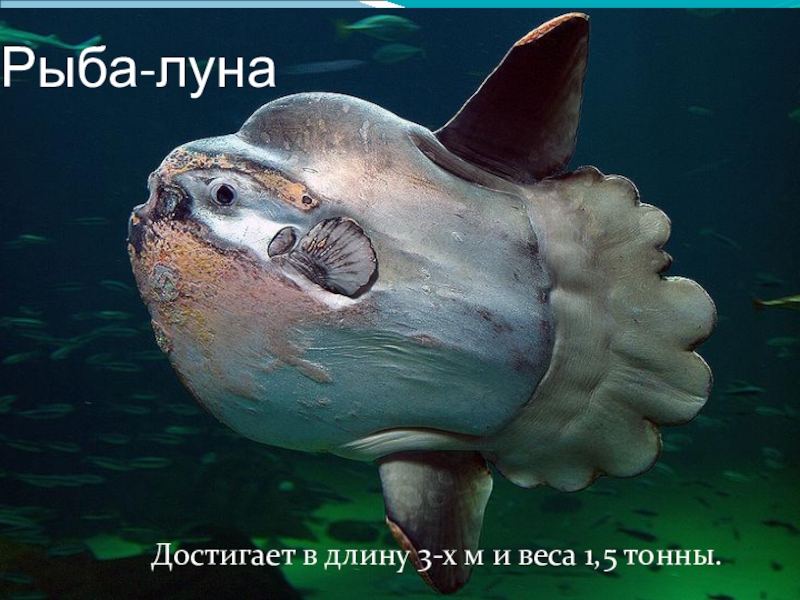 Рыба-лунаДостигает в длину 3-х м и веса 1,5 тонны.