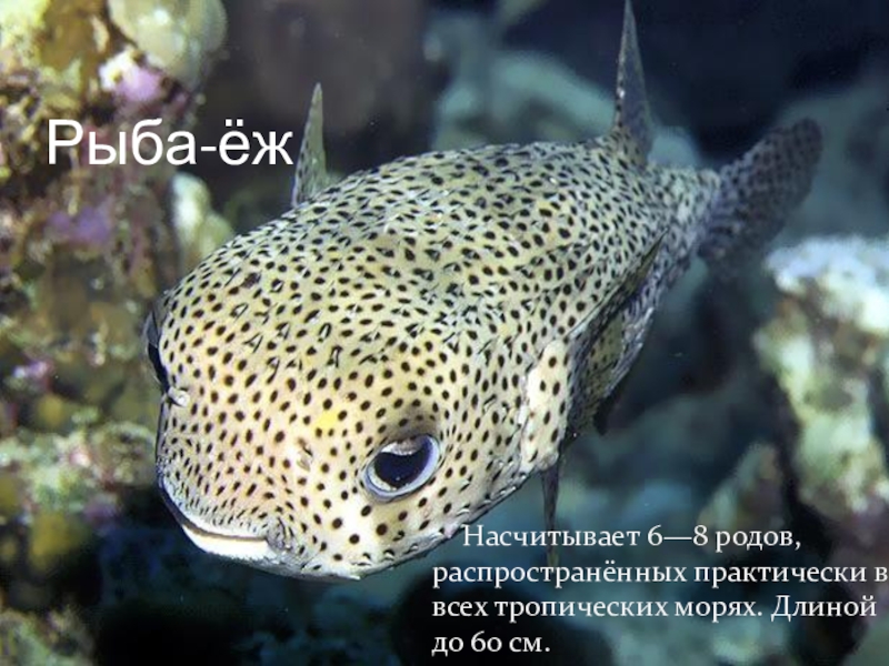 Рыба-ёж Насчитывает 6—8 родов, распространённых практически во всех тропических морях. Длиной до 60 см.