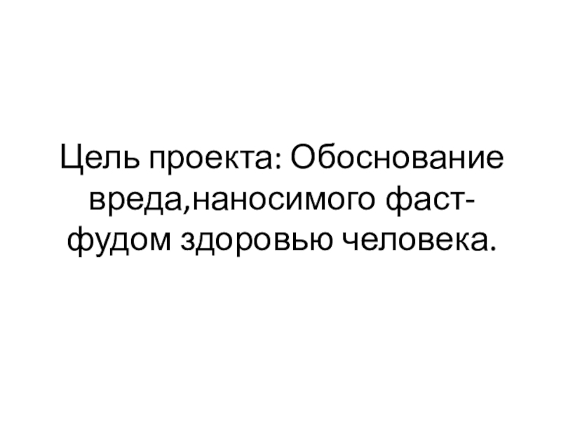Цель проекта: Обоснование вреда,наносимого фаст-фудом здоровью человека.