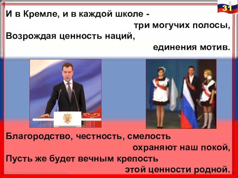 Слайд 29Отмечая День Государственного флага, мы ощущаем себя частью великой державы, гордимся,