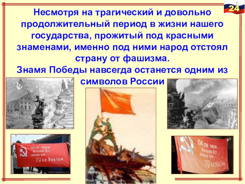 прожитый под красными знаменами, именно под ними народ отстоял страну от фашизма.