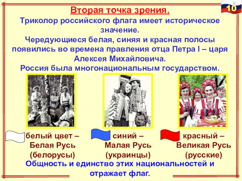 точек зрения на происхождение этих цветов в Государственном флаге.