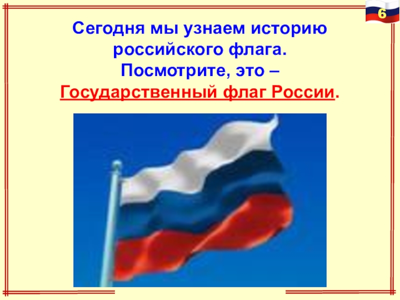 Слайд 6Сегодня мы узнаем историю российского флага.